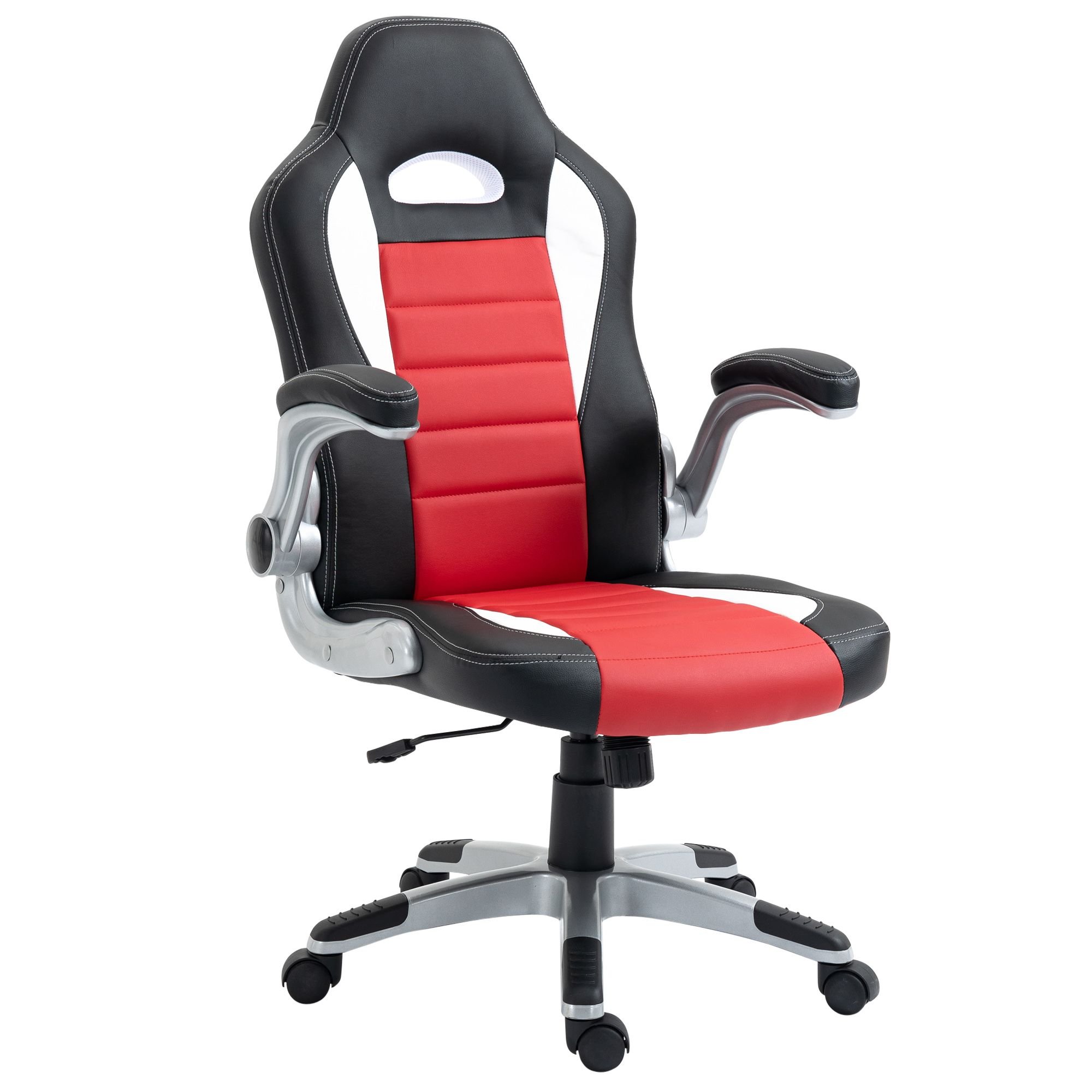 Home > Racing Gaming Chair PU Leather Office Chair Executive Computer Desk Chair with Adjustable Height, Flip Up Armrest, Swivel Wheels, Red