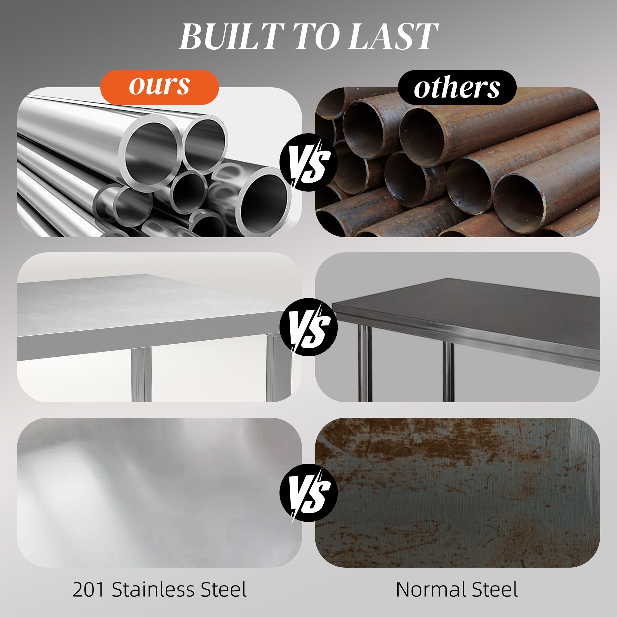 • • Heavy-duty table suits food prep and storage needs