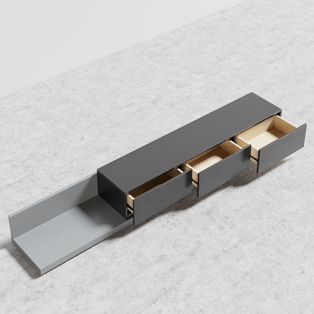 Crator Wood Modern Extendable TV Stand Black and Gray Media Console with 3-Drawer Crator Wood Modern Extendable TV Stand Black and Gray Media Console with 3-Drawer Crator Wood Modern Extendable TV Stand Black and Gray Media Console with 3-Drawer