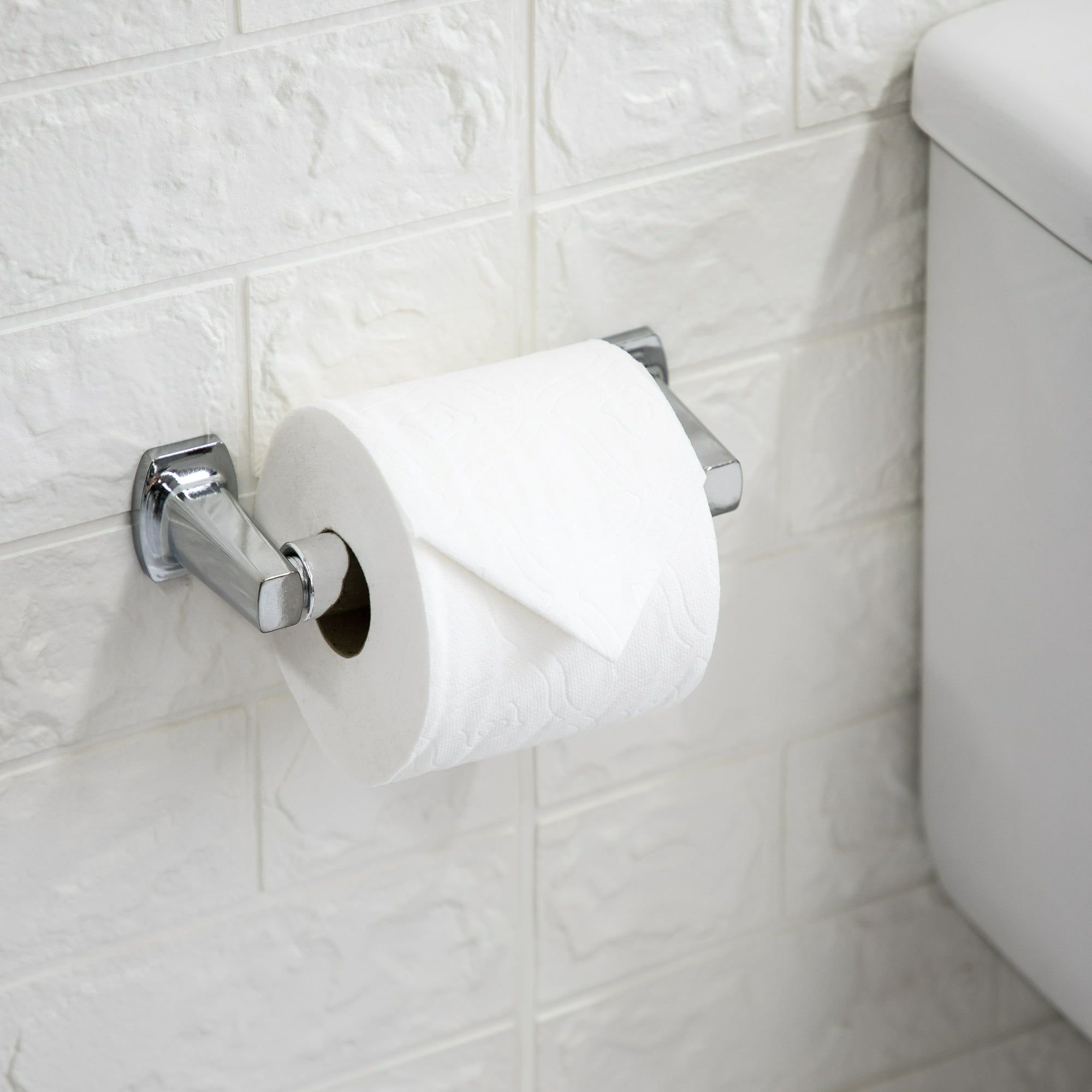Give your bathrooms a fresh, clean updated look today with this Mainstays Traditional Chrome Wall-Mounted Tissue Holder. This design will make any bathroom look bright and new again. It is available in a durable chrome finish that will look great in any bathroom in your home, office, or even in your camper. This ergonomic design makes it easy to change the tissue rolls as needed. This is an affordable way to refresh your bathroom fixtures. The traditional style tissue holder has a corrosion-resistant finish, with everyday functionality and with an ergonomic design. This zinc alloy tissue holder includes all of the hardware needed to mount to the wall or a cabinet. This item is also available in a modern black finish.