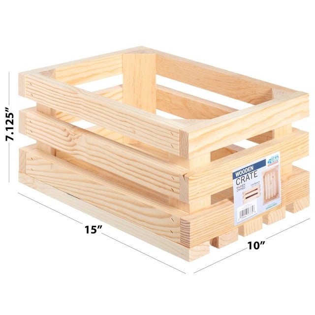 Leisure Arts Wood Medium Crate 15"x 10"x 7.25"- Sourced from sustainable forests, this crate is a perfect way to store and organize keepsake items, files, books, and more. The creative options for crafting unique crate storage, shelving or accent pieces are endless. Unfinished pine wood crates are durable, sturdy with no assembly required and are ready to finish to your liking. Crate measures